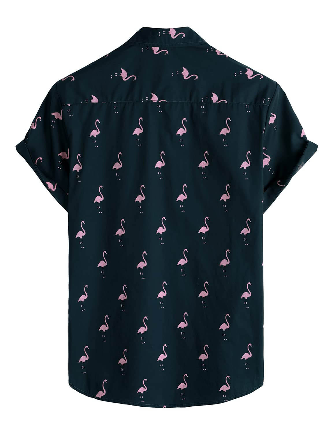 Set di Camicia e Pantaloni Corti in Cotone Estivo Blu con Fenicotteri per Uomo