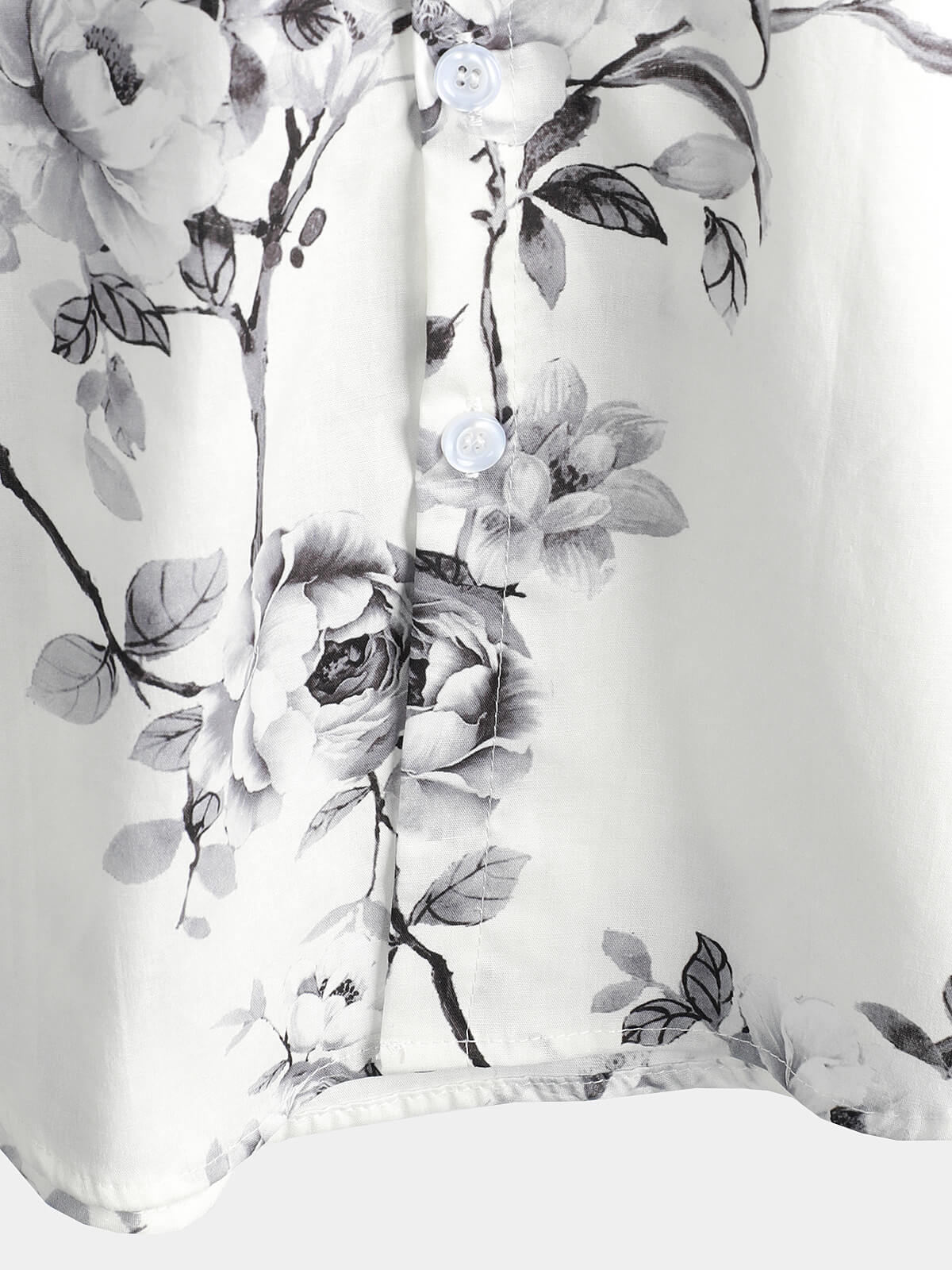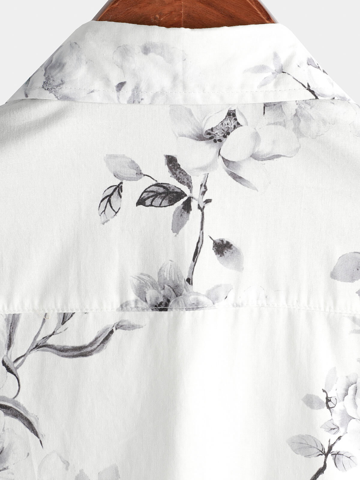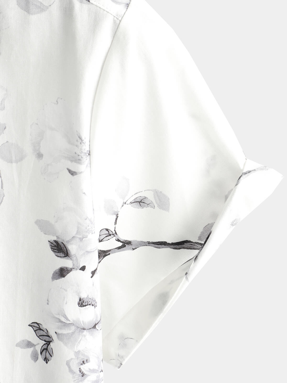 Camicia hawaiana da spiaggia bianca floreale da uomo