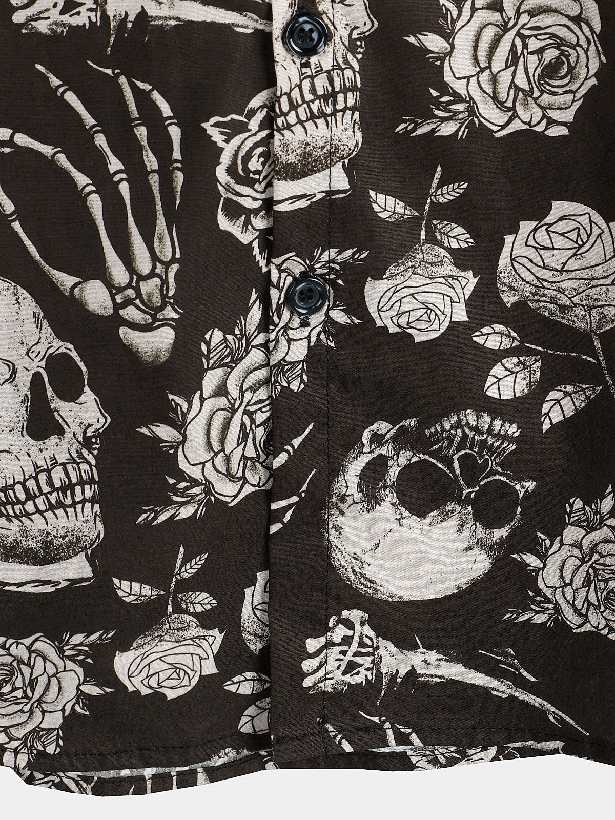 Maglietta da uomo con teschio e rosa floreale punk rock and roll