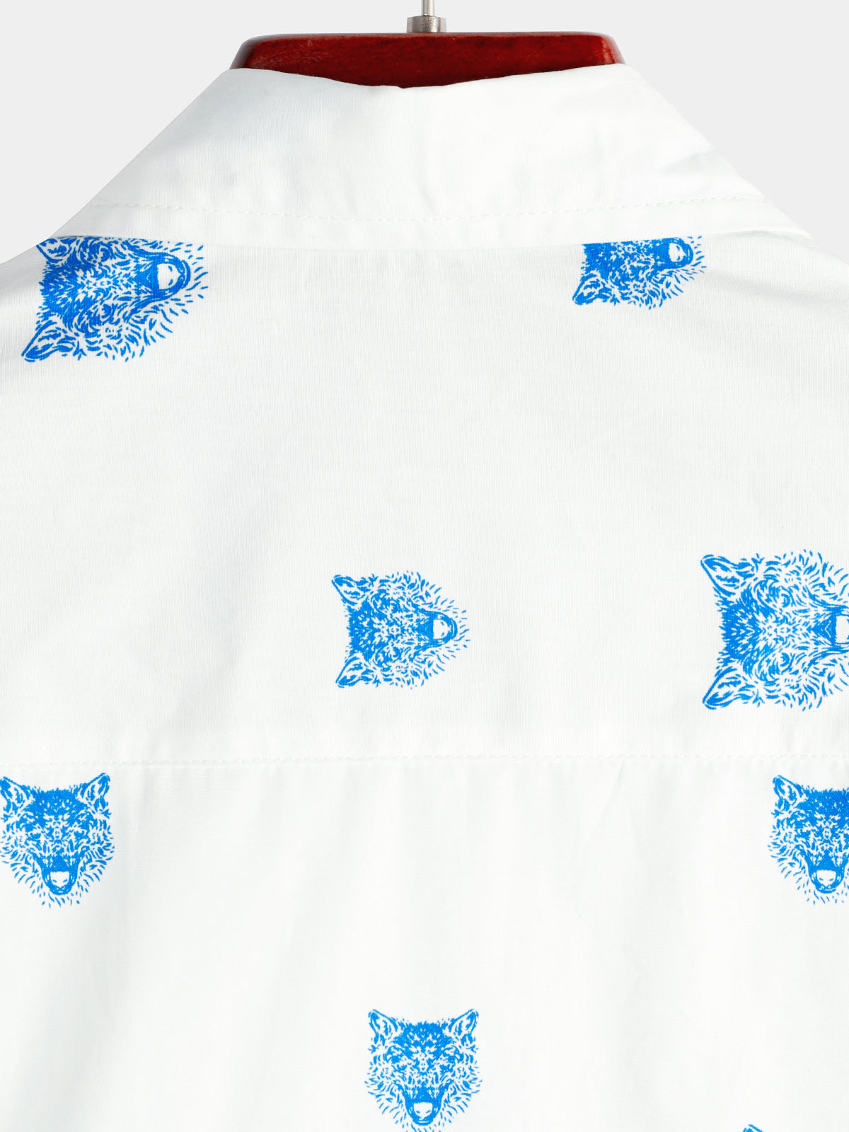 Camicia casual a maniche corte da uomo con motivo a lupo